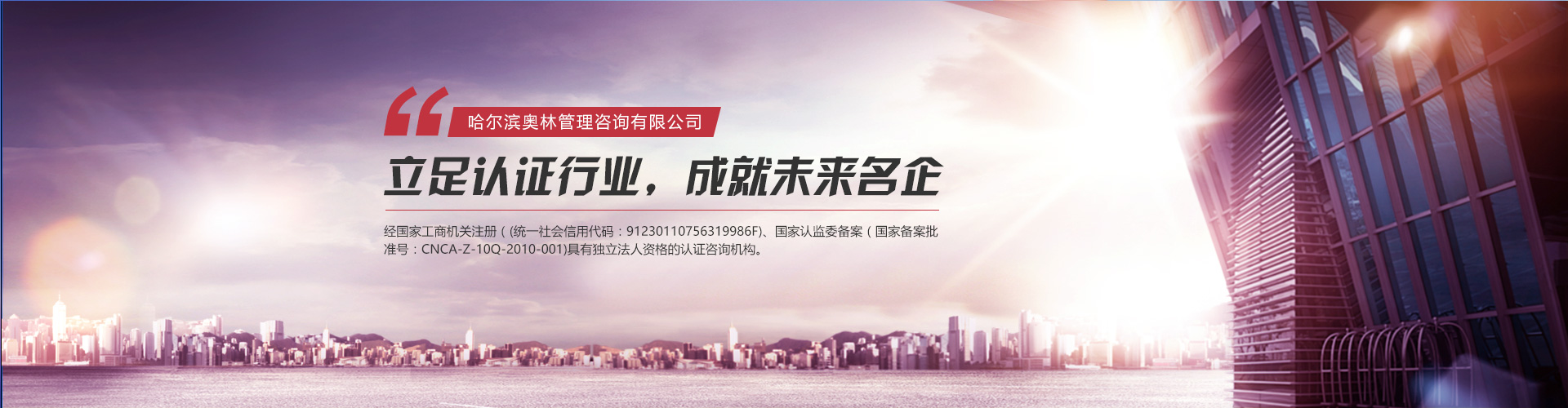 哈爾濱奧林管理咨詢有限公司(原新時代質(zhì)量認證咨詢有限公司)成立于2000年9月,簡稱HOL,HOL是經(jīng)國家工商機關注冊(統(tǒng)一社會信用代碼:91230110756319986F)、國家認監(jiān)委備案(國家備案批準號:CNCA-Z-10Q-2010-001)具有獨立法人資格...